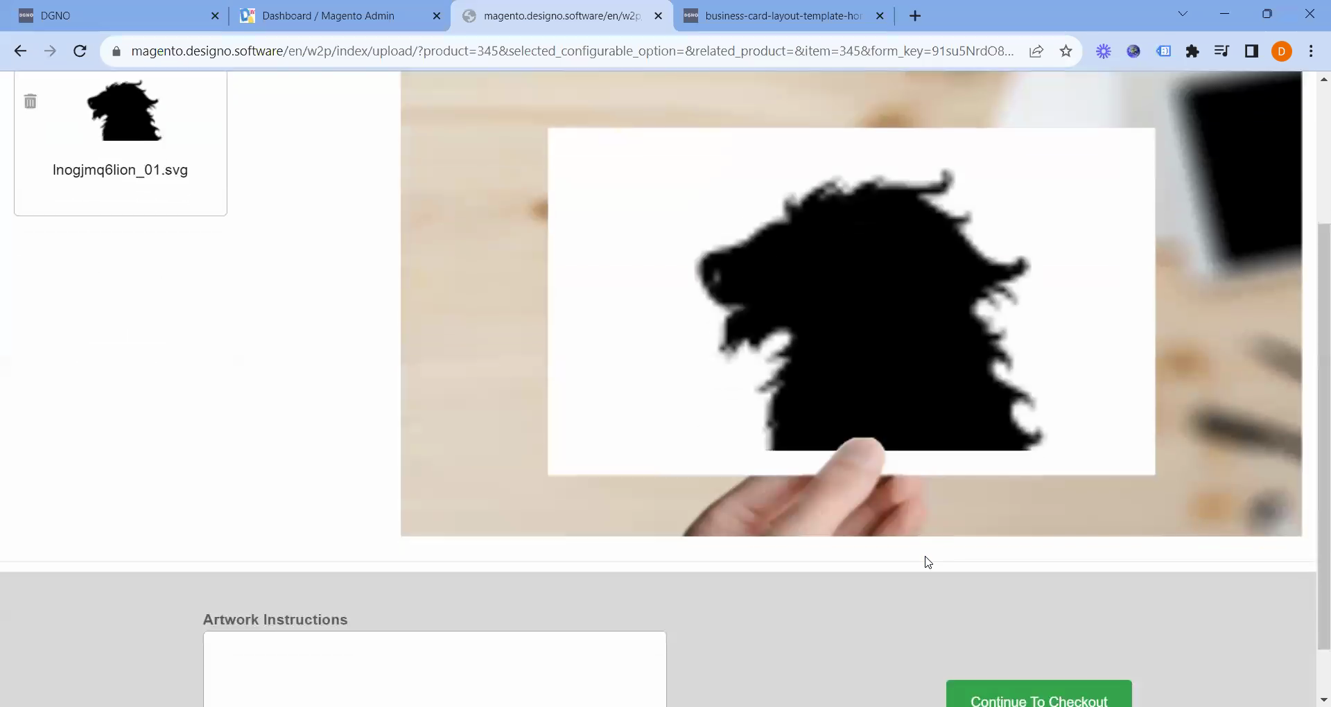 To start, I'll demonstrate how the file upload feature works on the website's frontend. I'll use a business card as an example, showcasing the capability to upload files seamlessly. This functionality streamlines the process for customers, enabling them to proceed to checkout effortlessly by simply uploading their files.