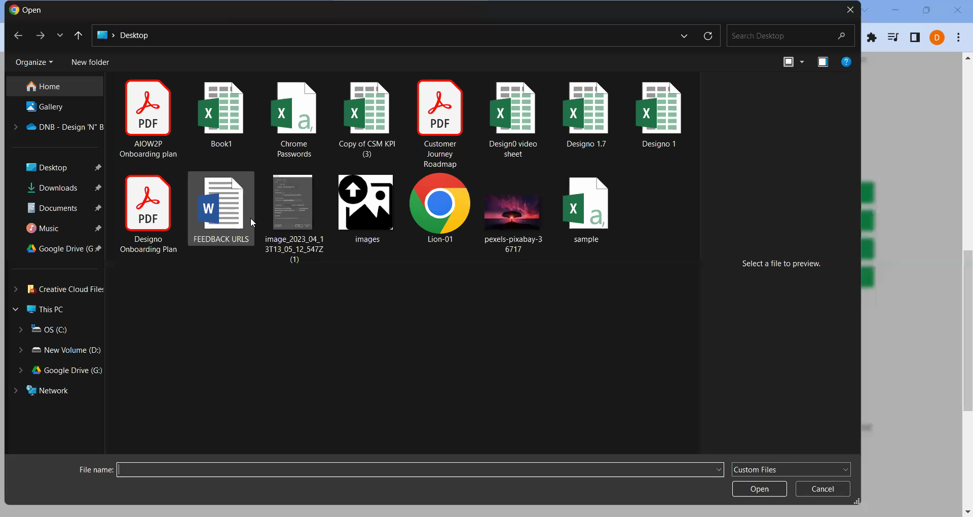 File upload pop-up will appear
