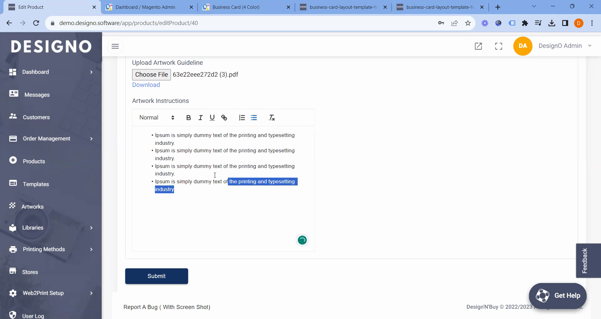 After finalizing the text, the next step is to click on "Submit".