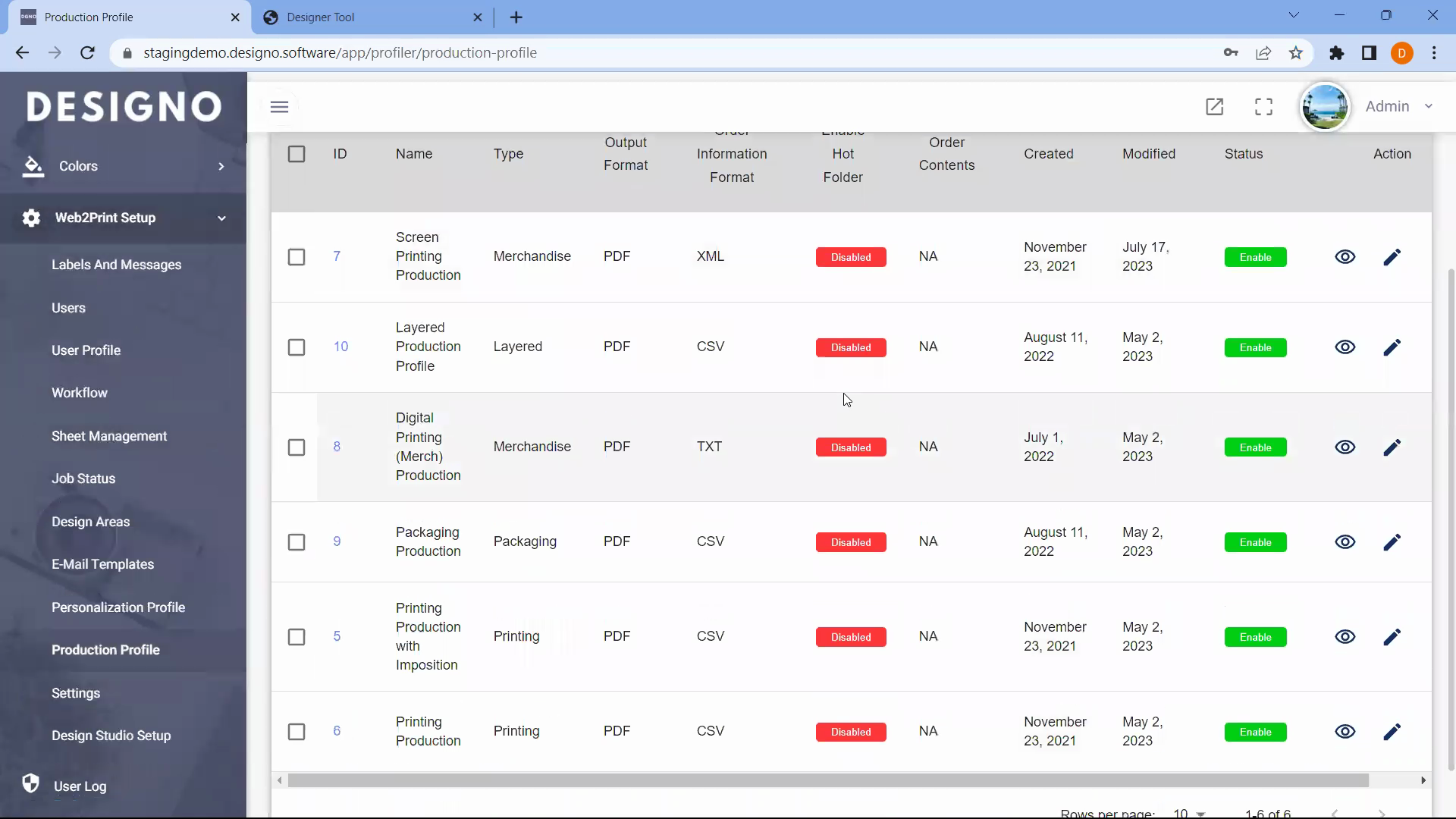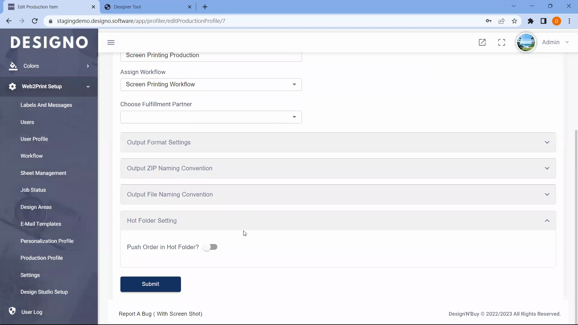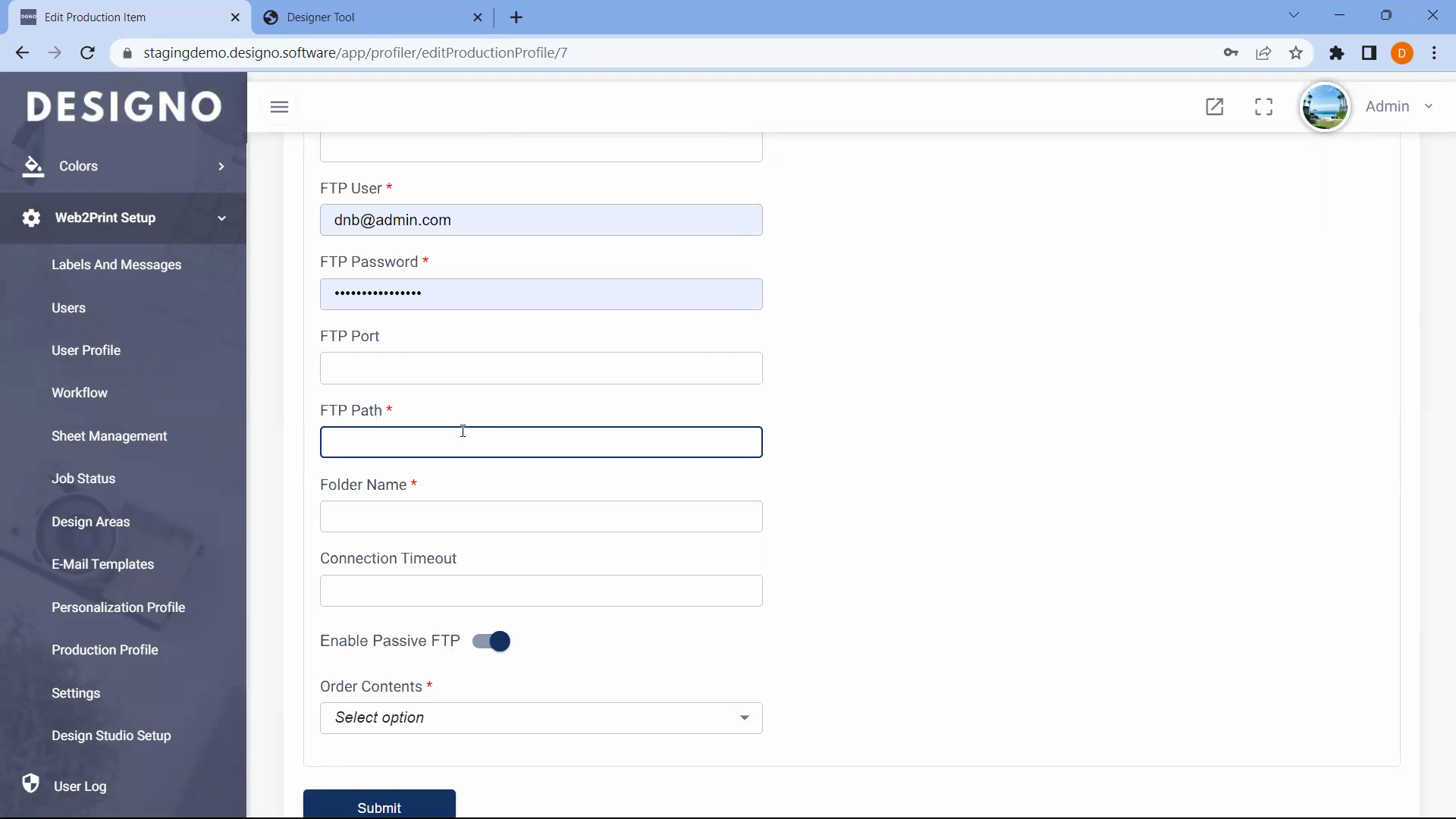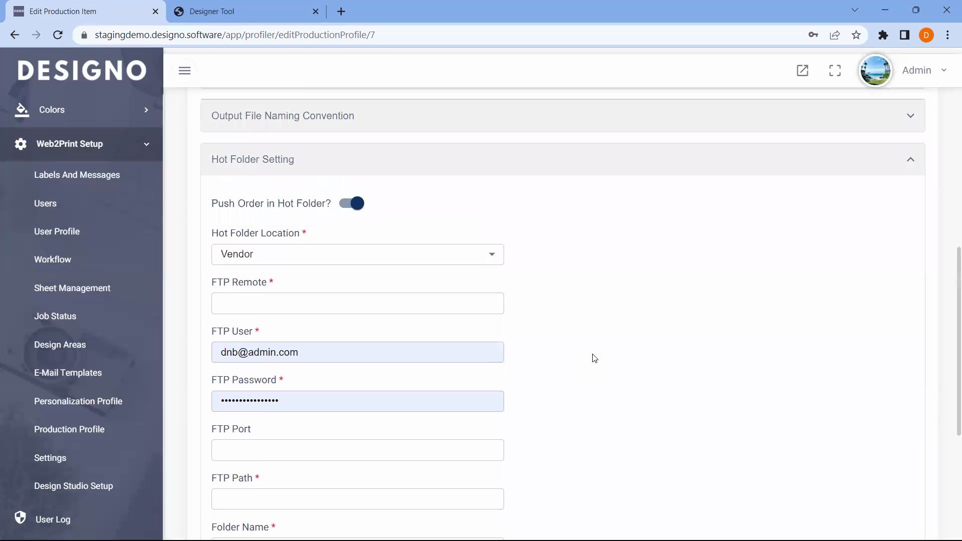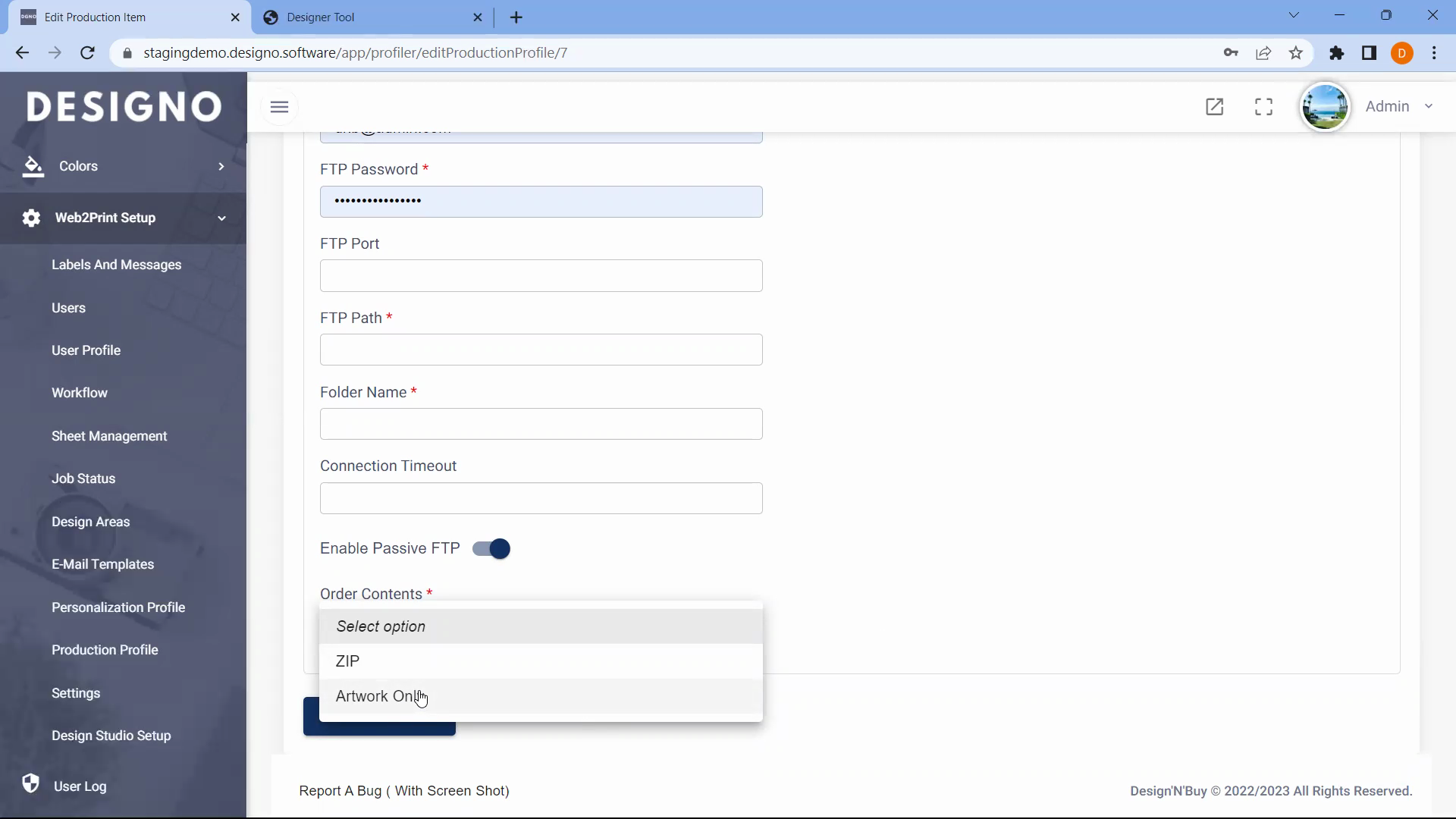 - Go to Web-to-Print Setup → Production Profile.