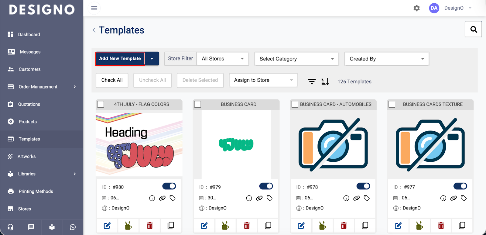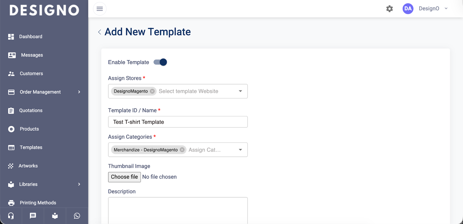 Step 3: Select DesignO Magento for the store. Input a template name and assign it to a category.