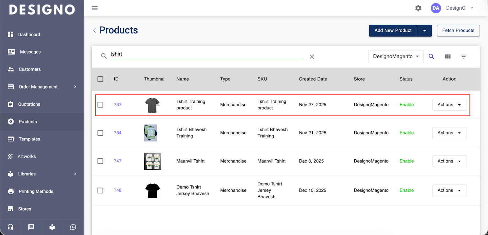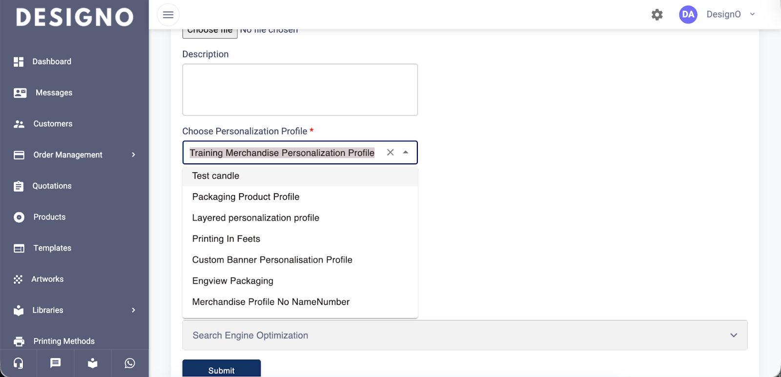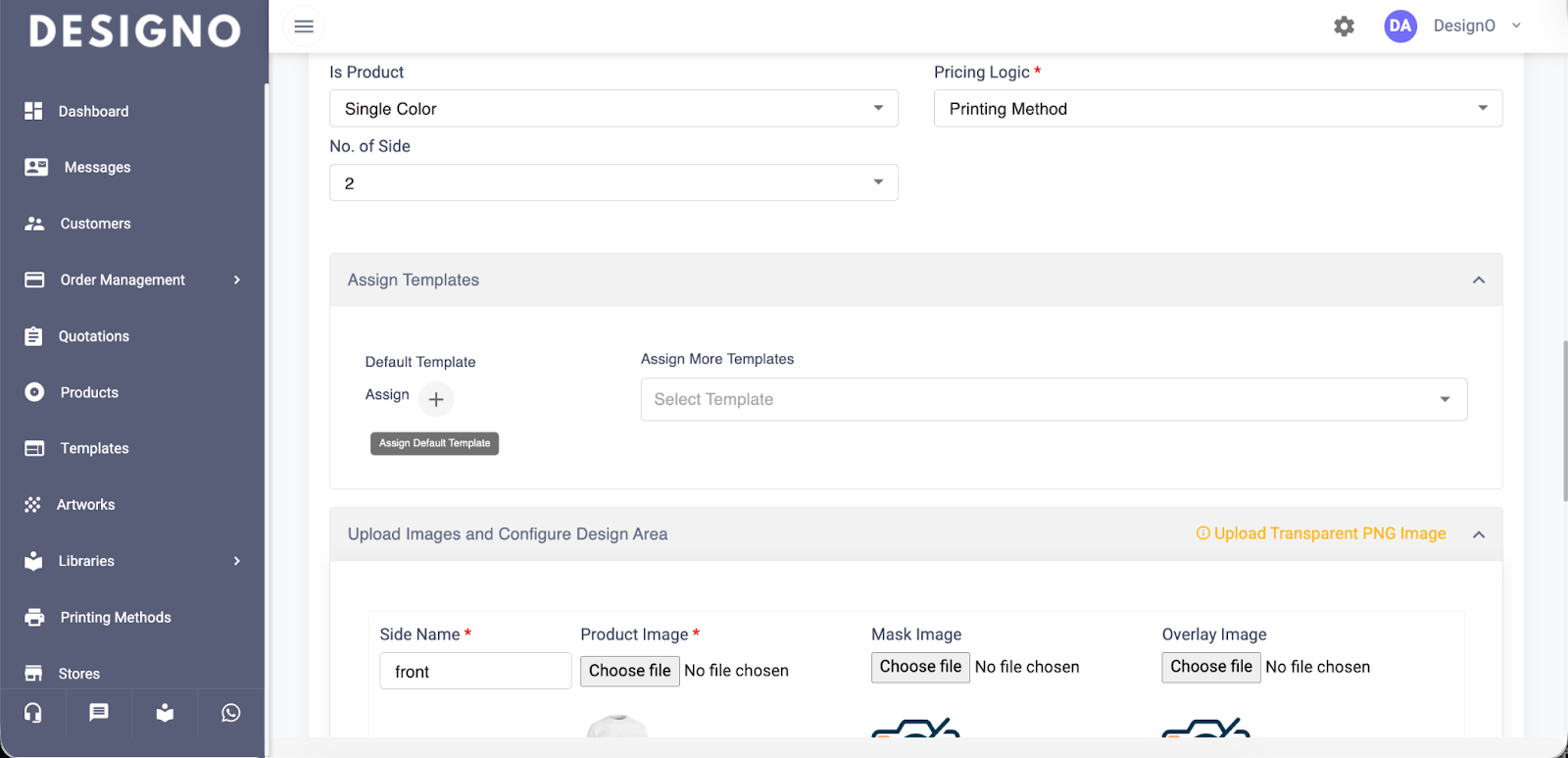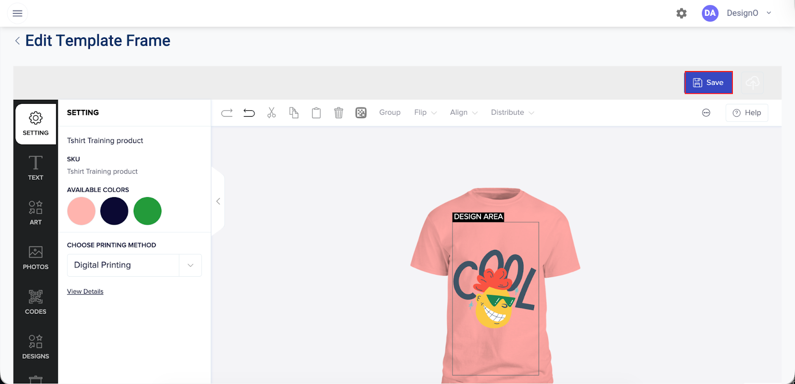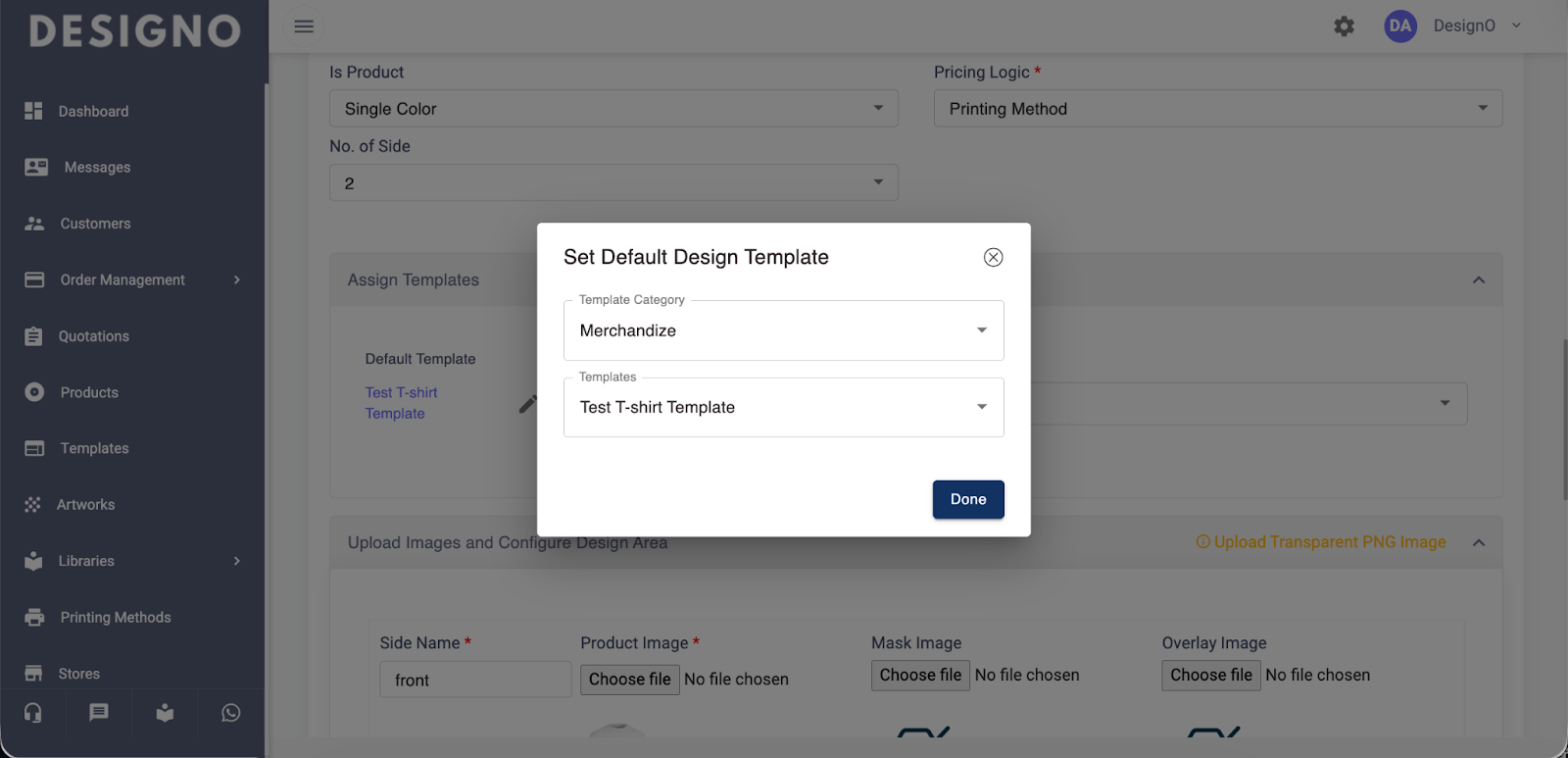 This tutorial concludes the process of creating and assigning a template for a merchandise product in DesignO. Although this guide used a minimal design for demonstration, more complex designs can be created as required.