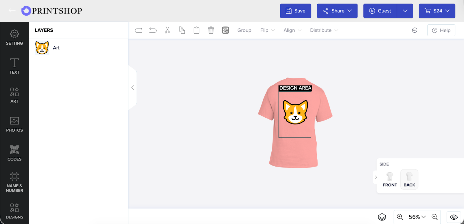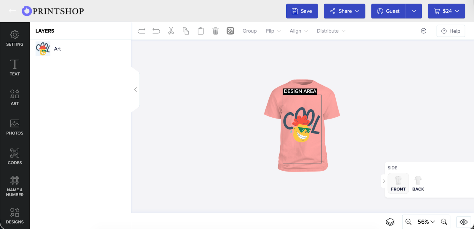 Step 3: For this example, a minimal design is used. Add one artwork to each side of the t-shirt.