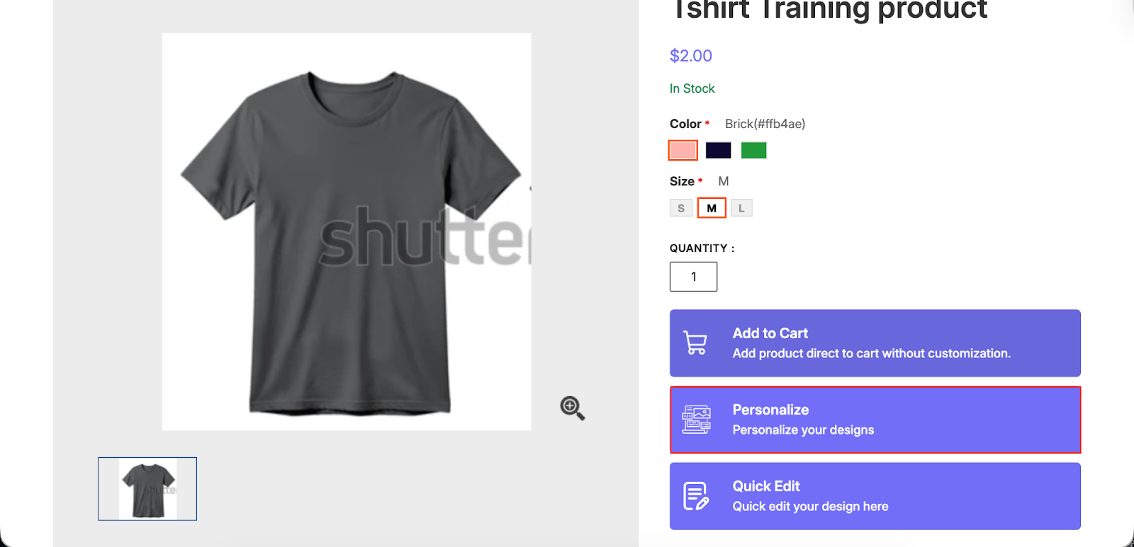 Step 2: Select the desired color and size, then click on the Personalize option.