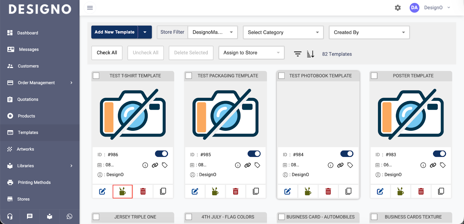 Step 1: After submitting, the system redirects to the template library page. Click on the design icon of the newly created template.