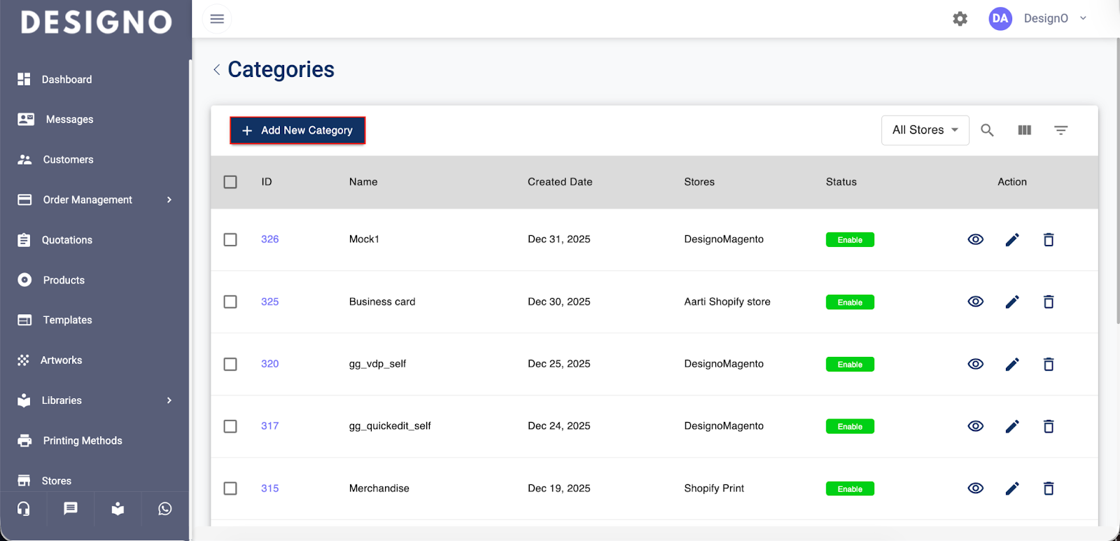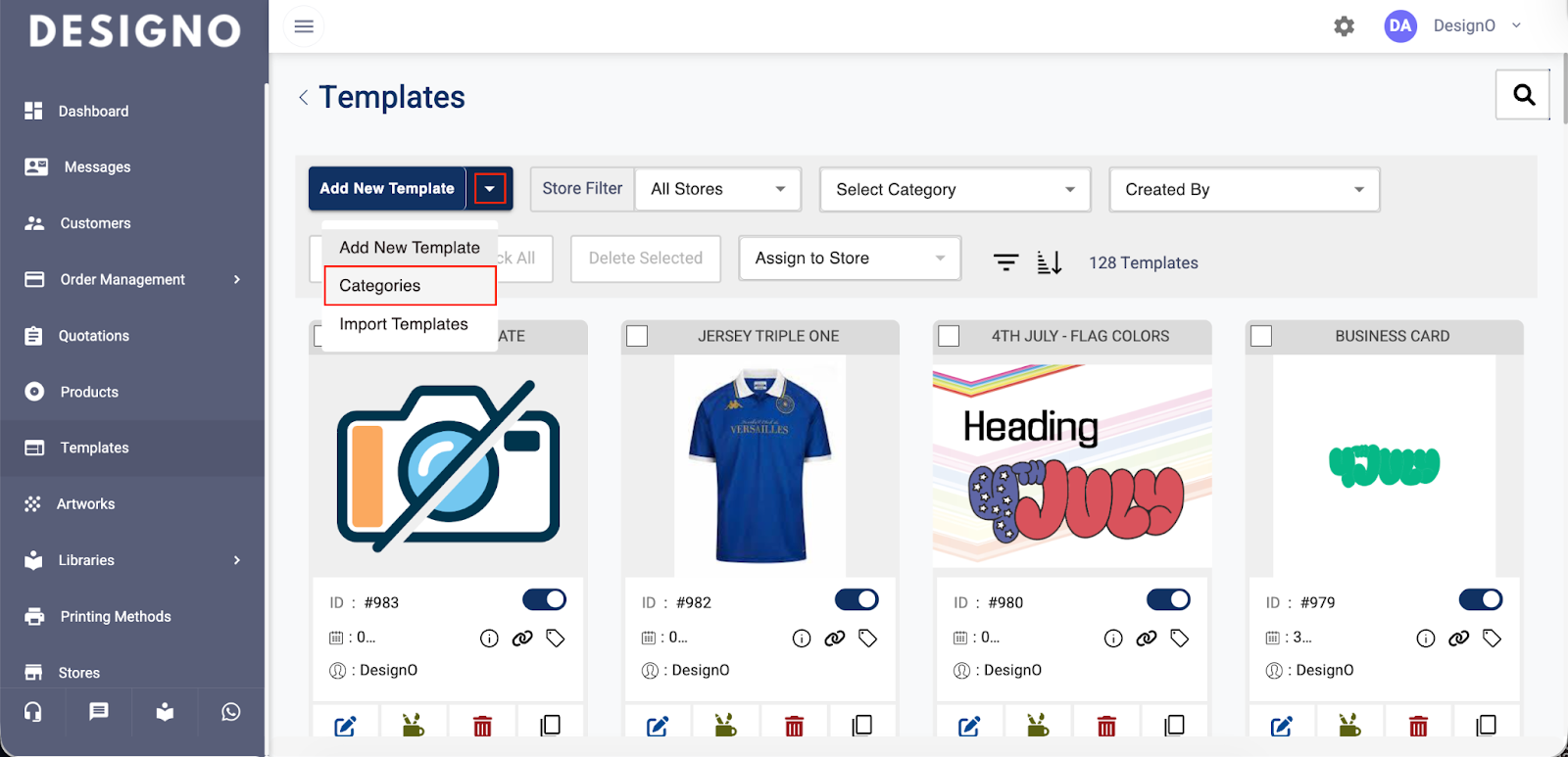 Step 16: If you want to create a template that doesn't fit into existing categories, you can create a new category. Go to categories, click on add new categories, assign the store, and name the category.