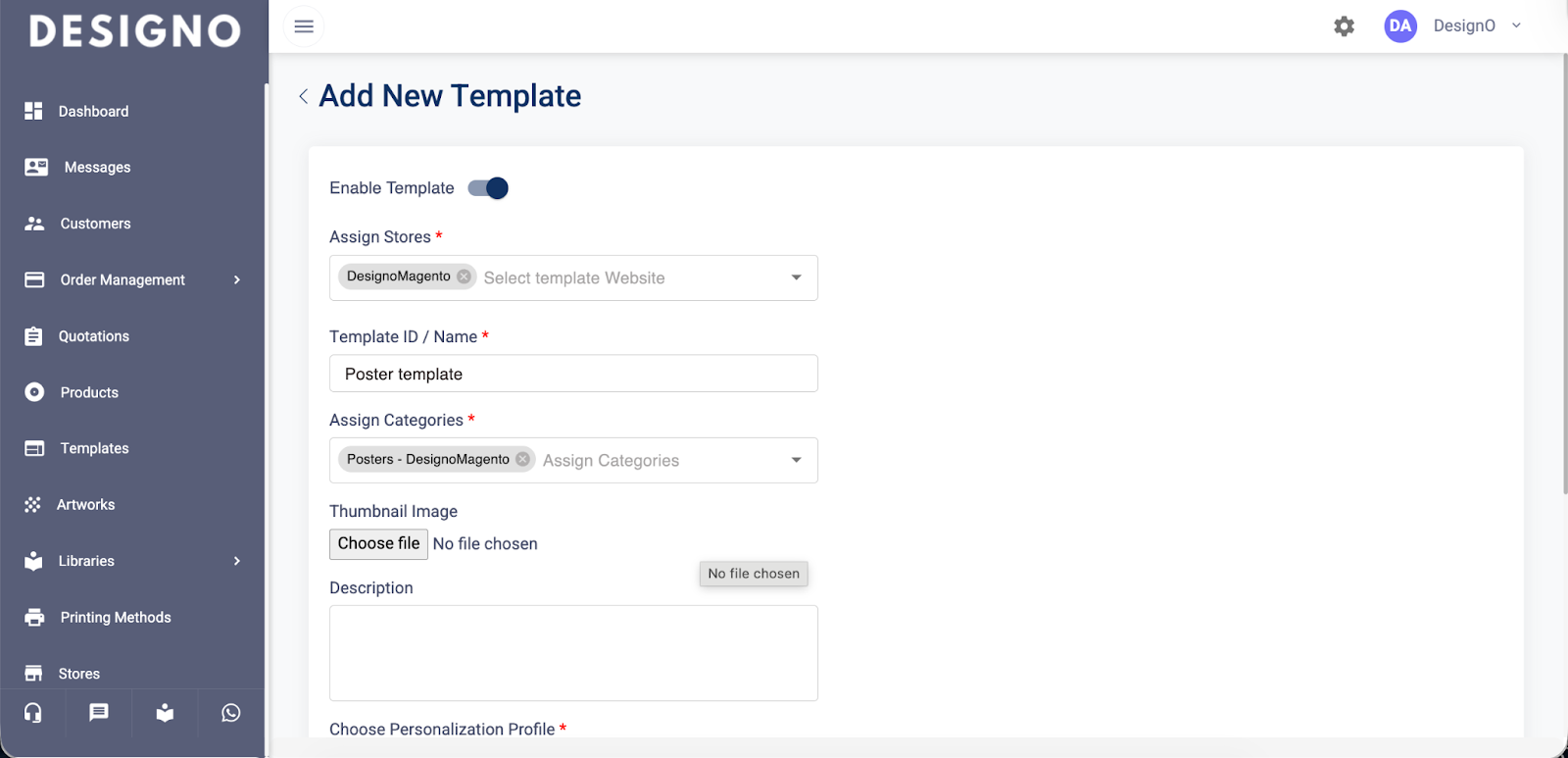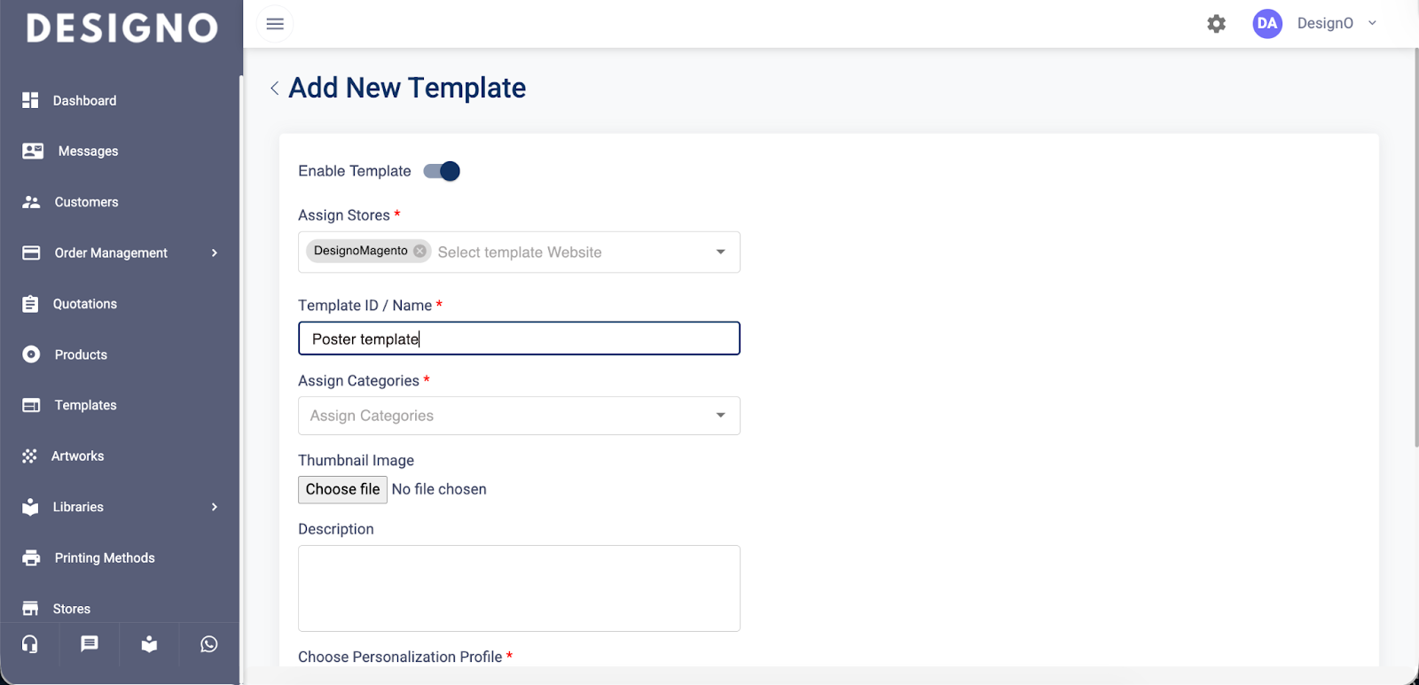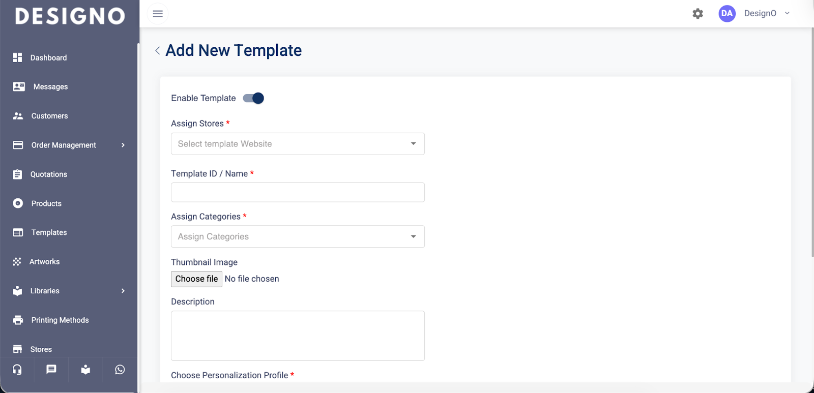 Step 4: Add a new template. You'll be directed to the add new template page. The enable template option should already be enabled.