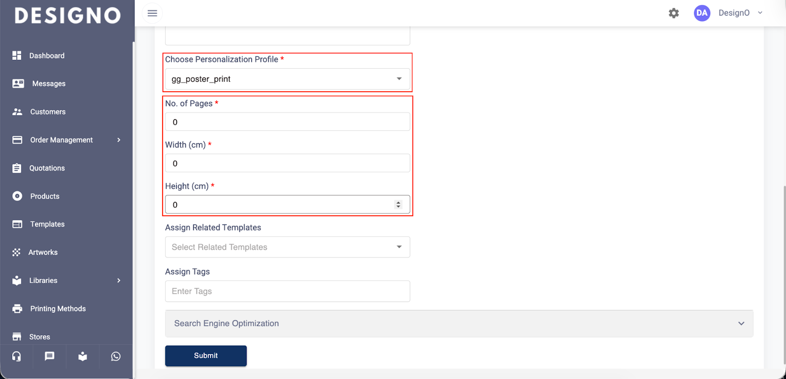 Step 8: If you want to assign any related templates or do any SEO work, you can do that from this page. Once done, hit submit.