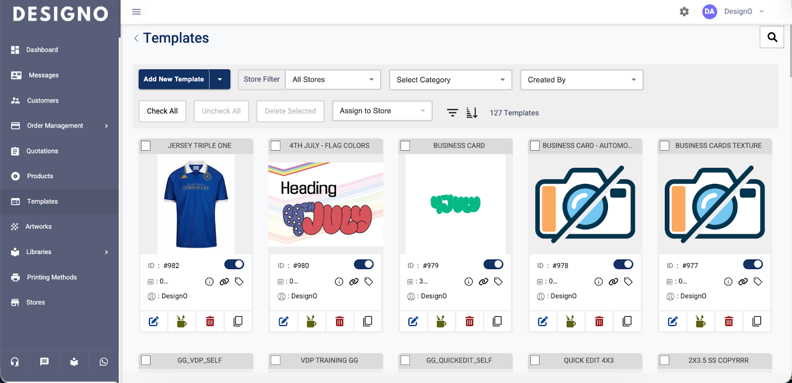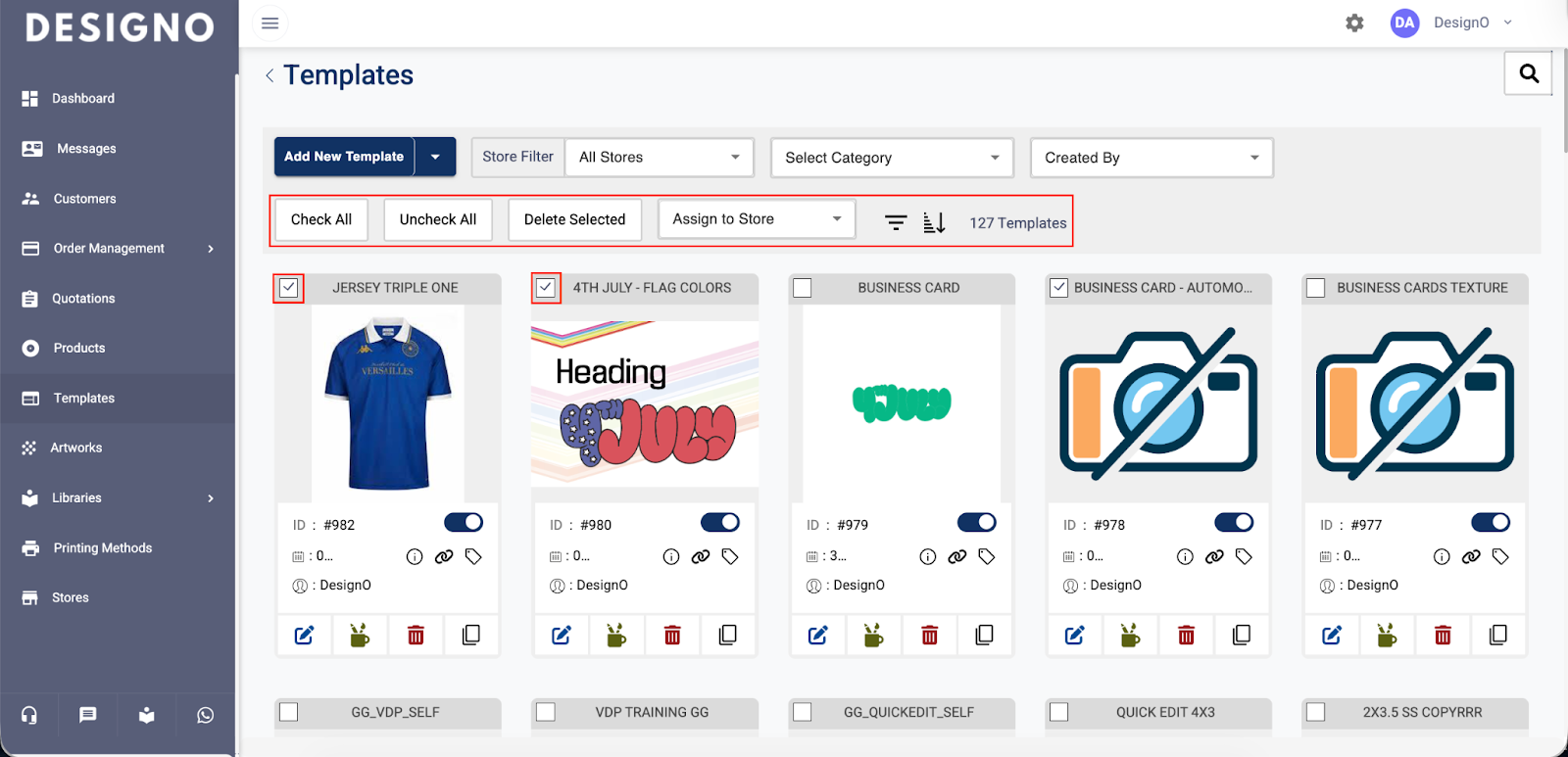 Step 3: Select multiple templates by clicking on the appropriate area. Once selected, you have the option to delete them or assign them to a store.
