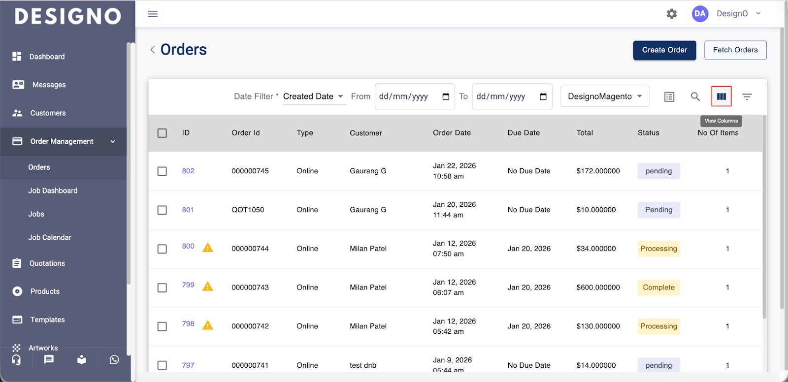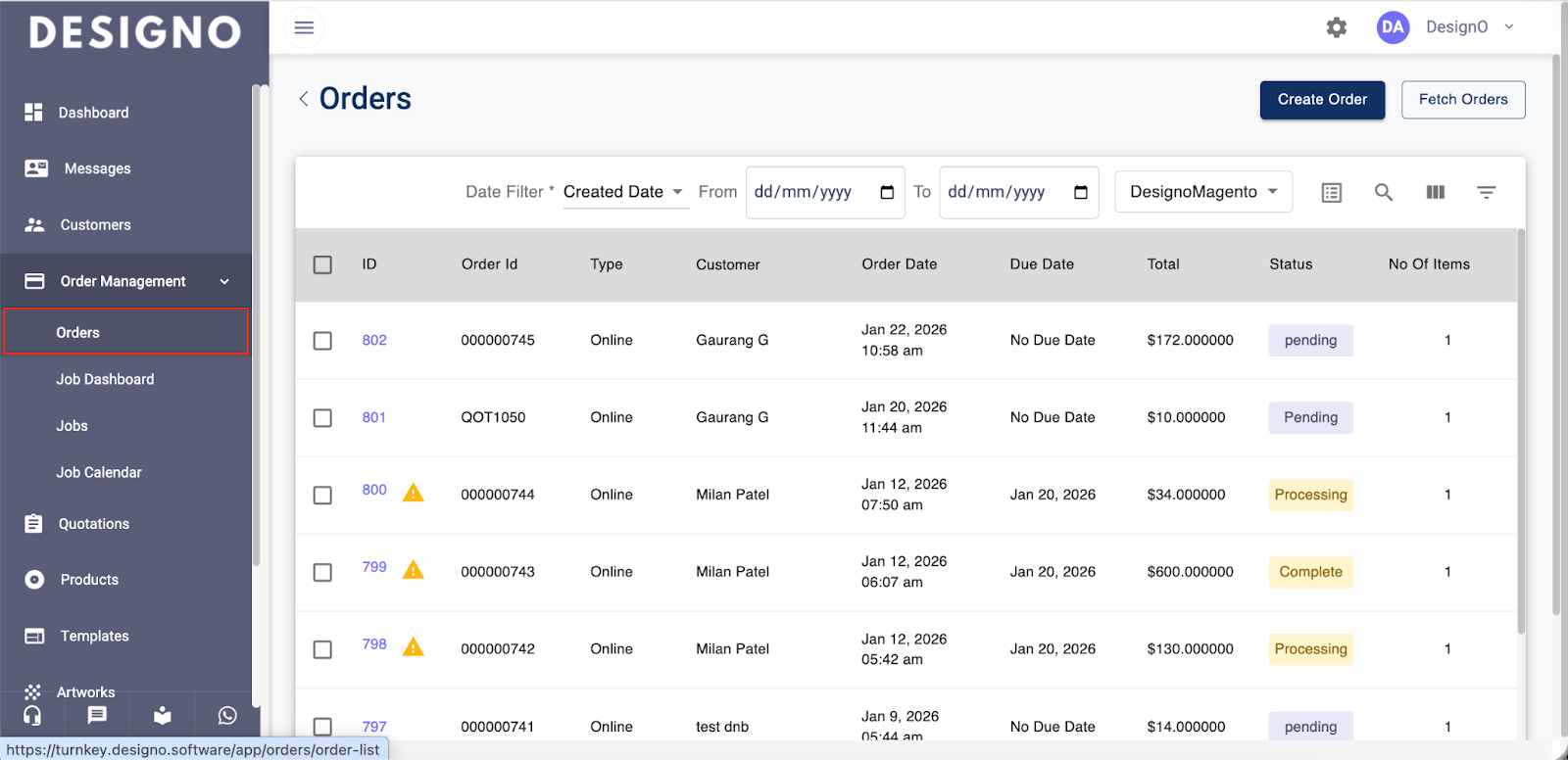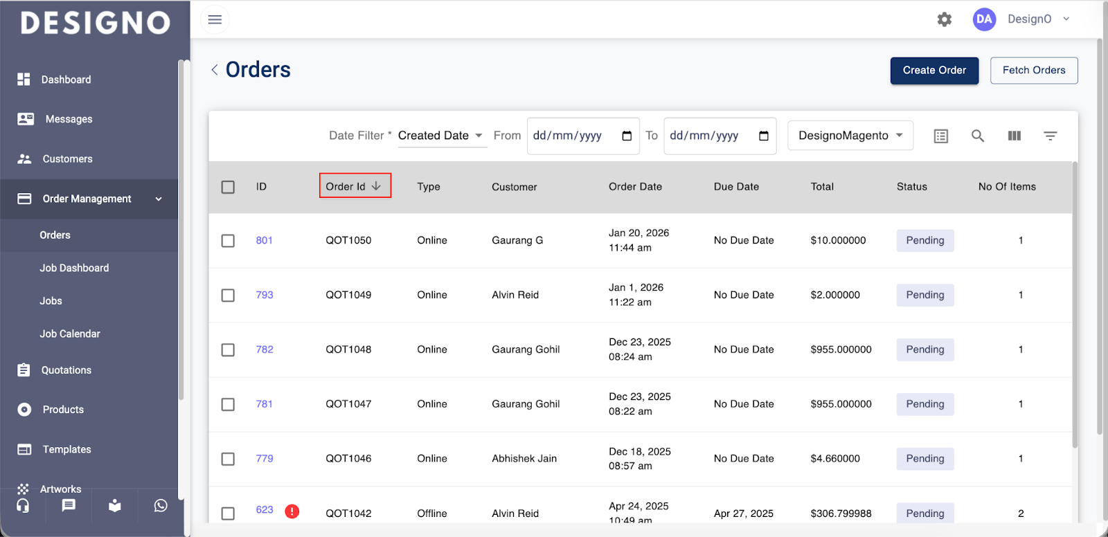 Click on Order under the Order Management to view the list of orders.