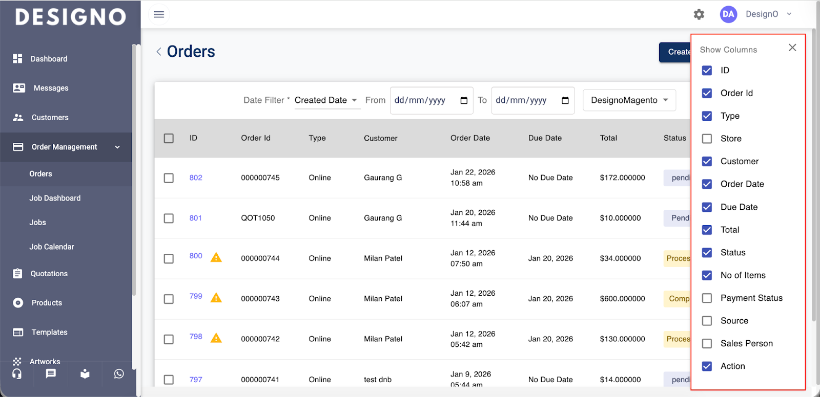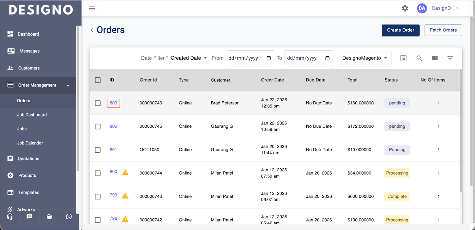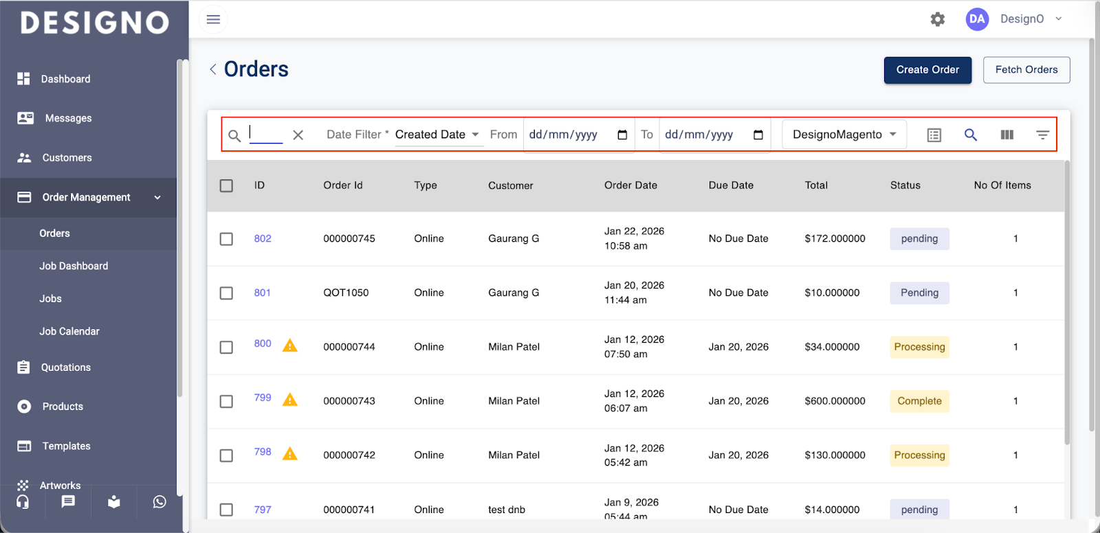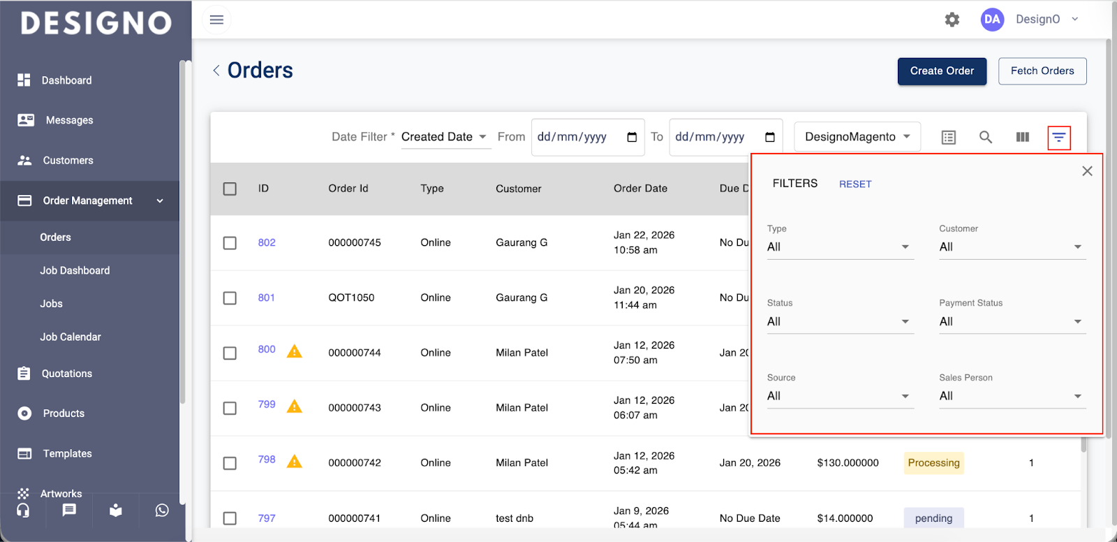 Click on Order under the Order Management to view the list of orders.