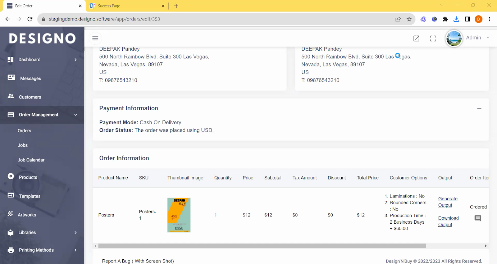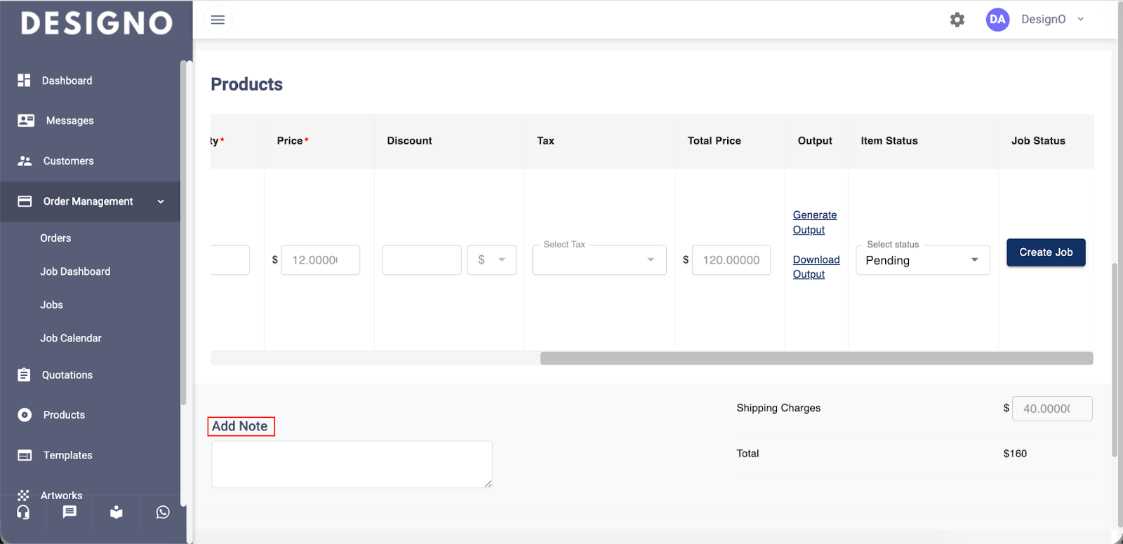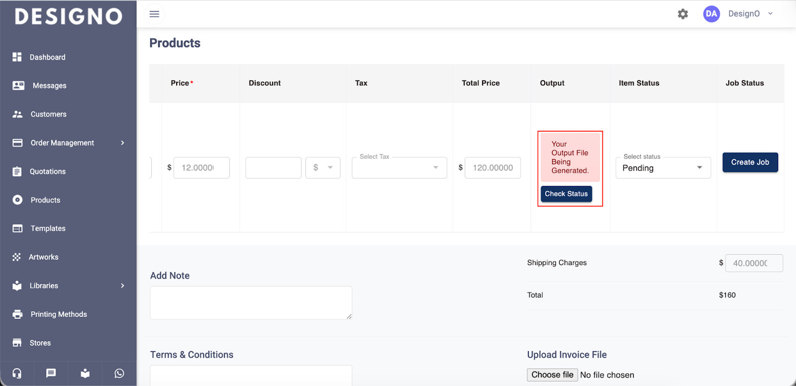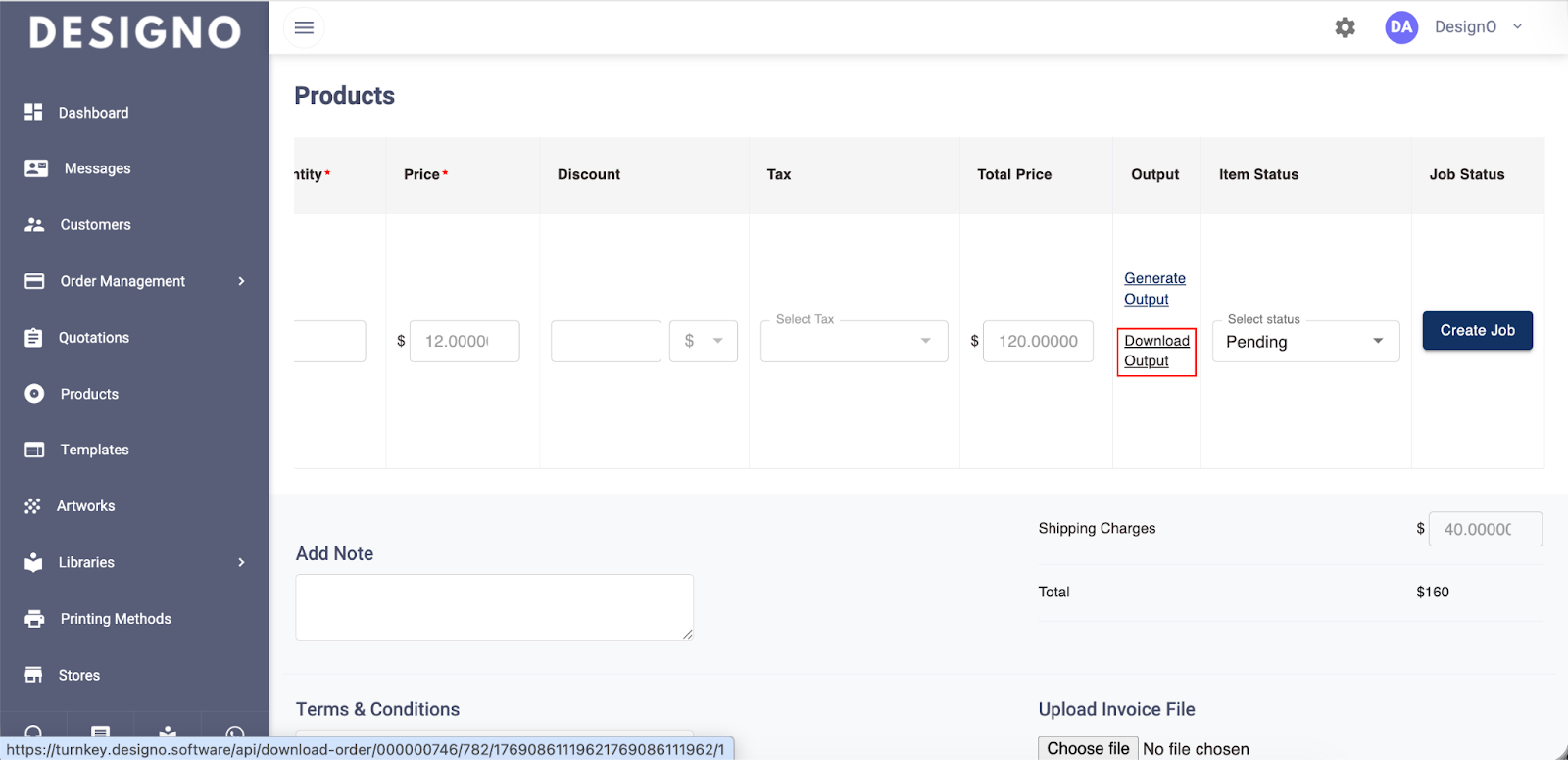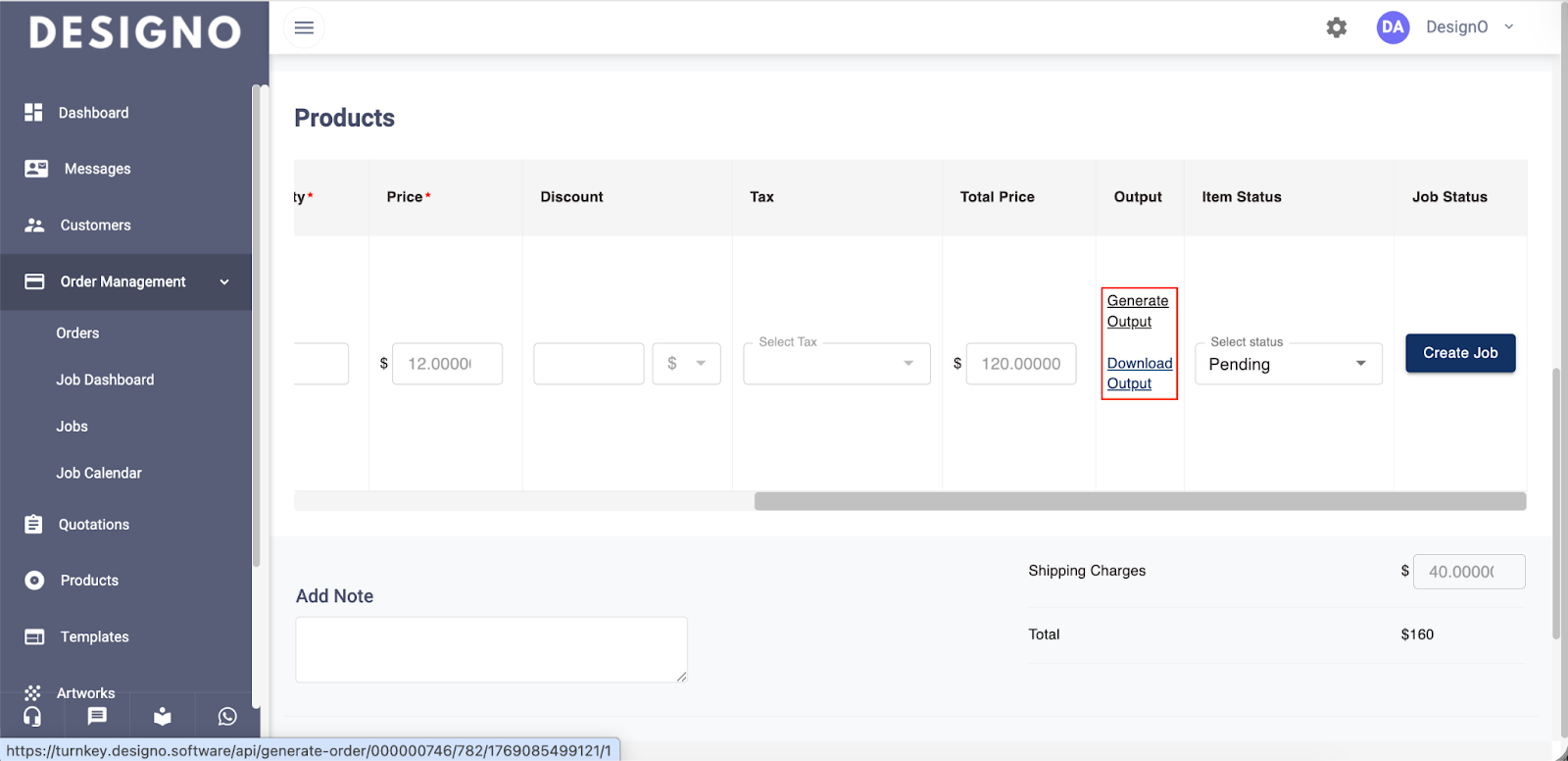 Click Generate Output so that you can later download the order details.