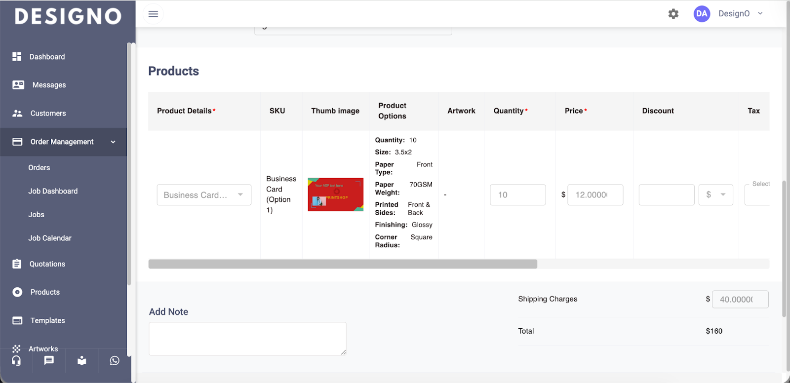 View the order information, including product name, SKU, quantity, price, and any custom options selected.
