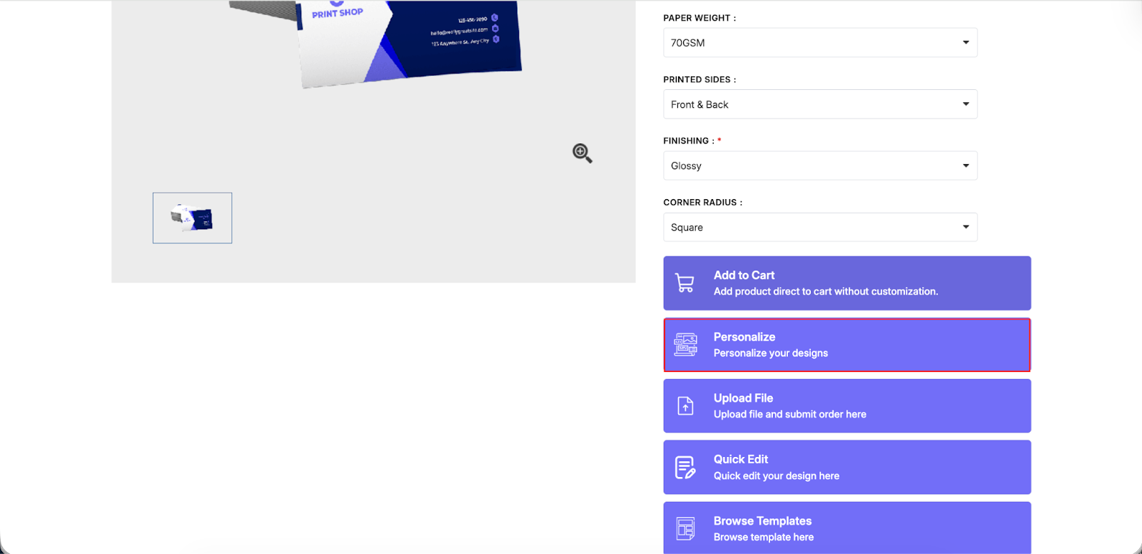 Navigate to the product detail page and click on the personalize button to reach the design studio.