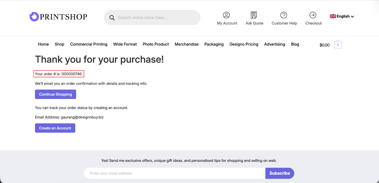 Place the order by entering your details. The order ID will be displayed.