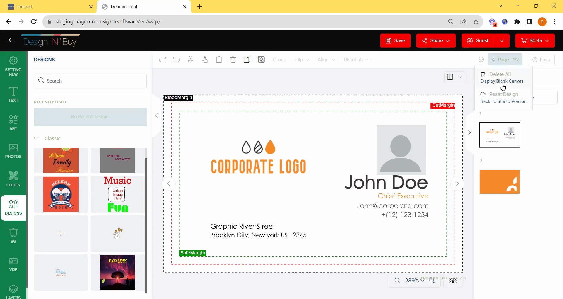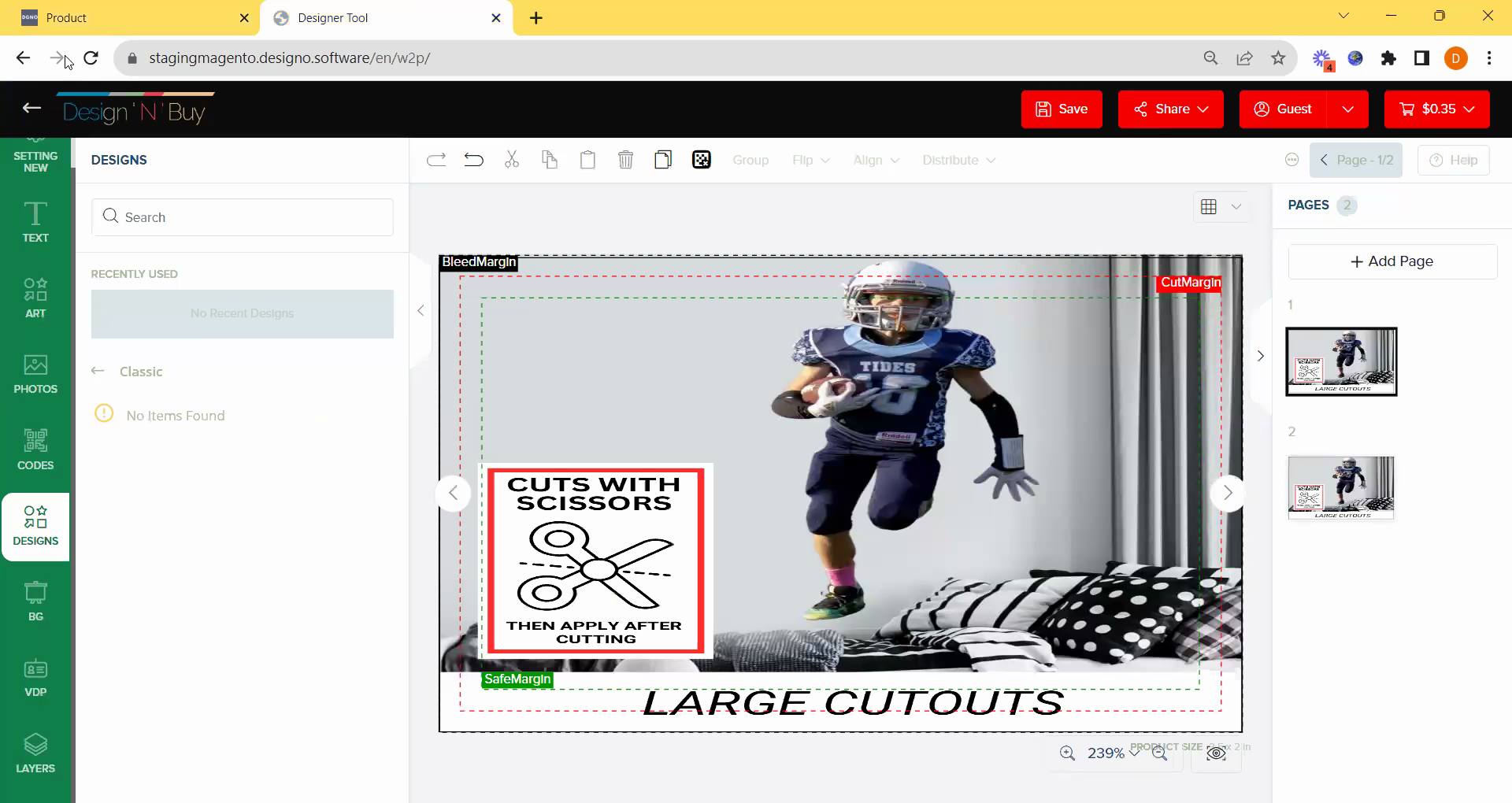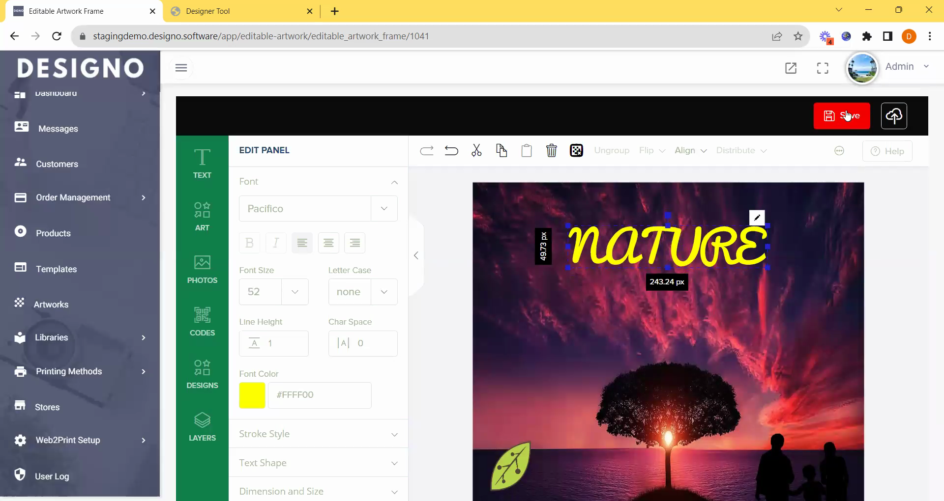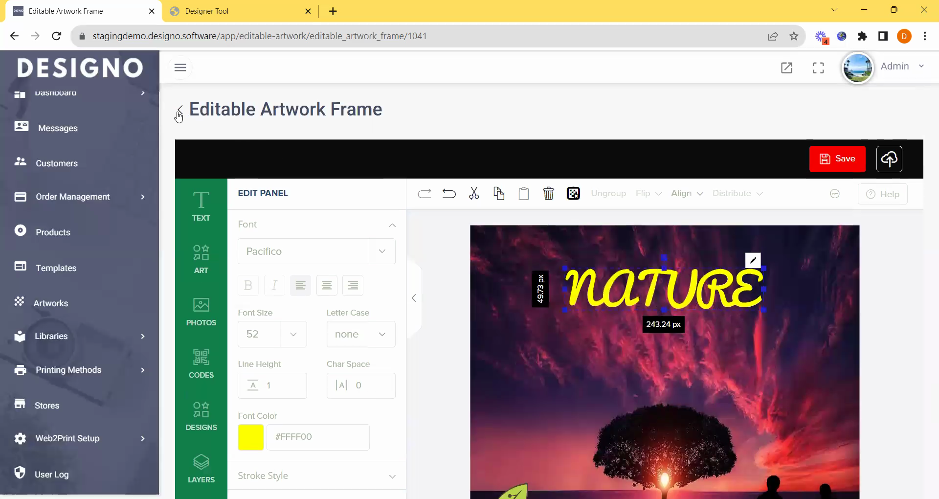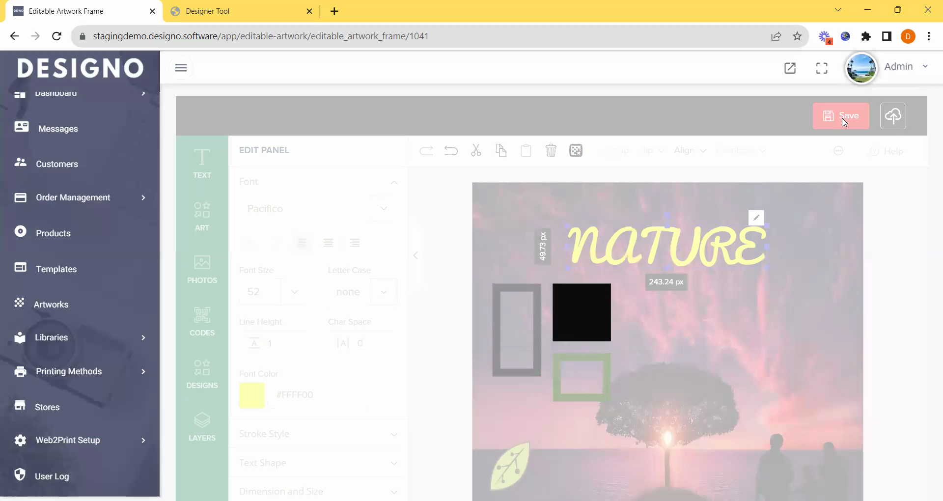 Step 3: Go to the front end website, click on the product where you assigned the artwork, click on personalization on the product detail page and load the design studio.