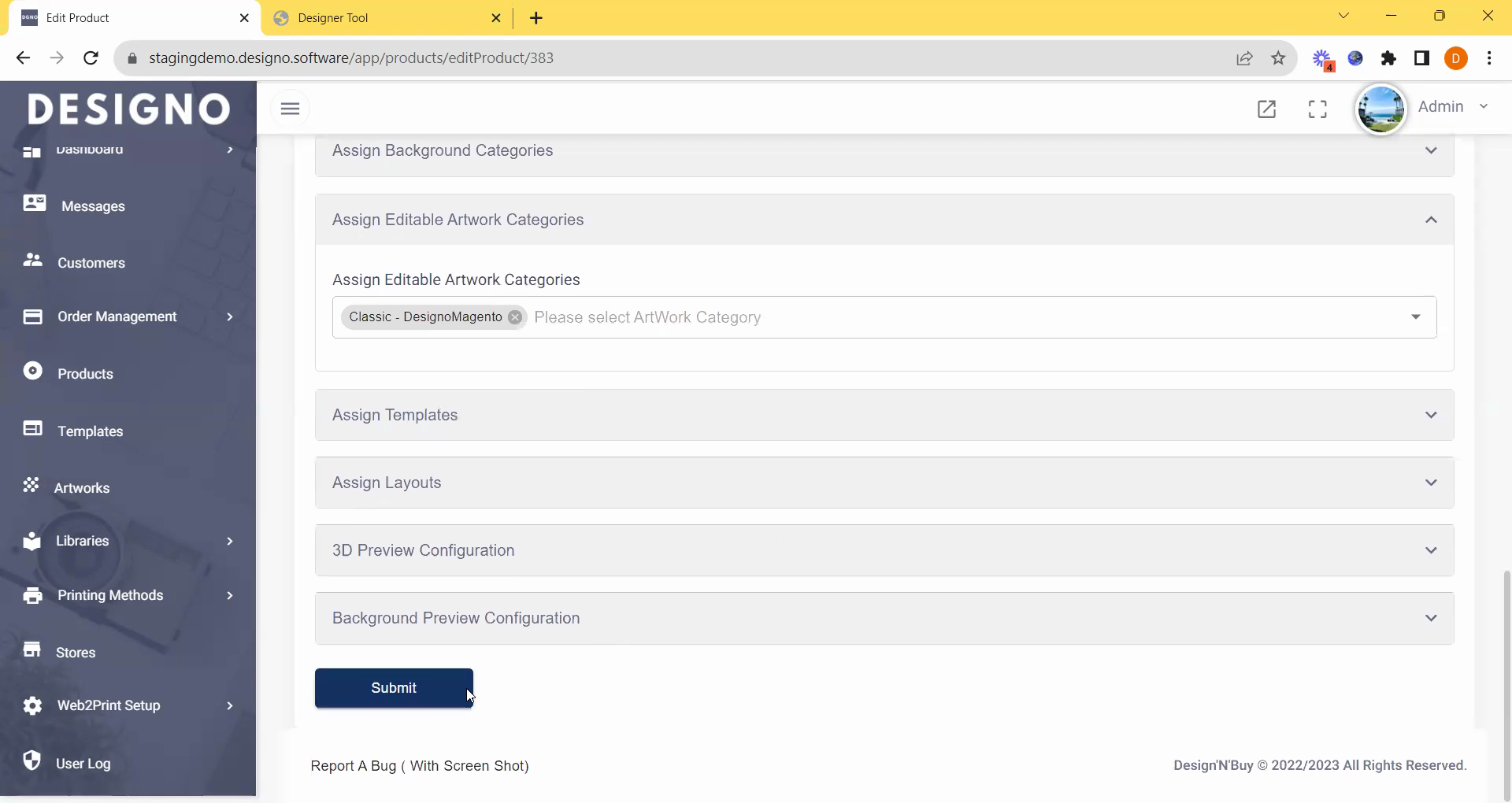Step 2: Under the editable artwork category, select the desired category and click Submit.