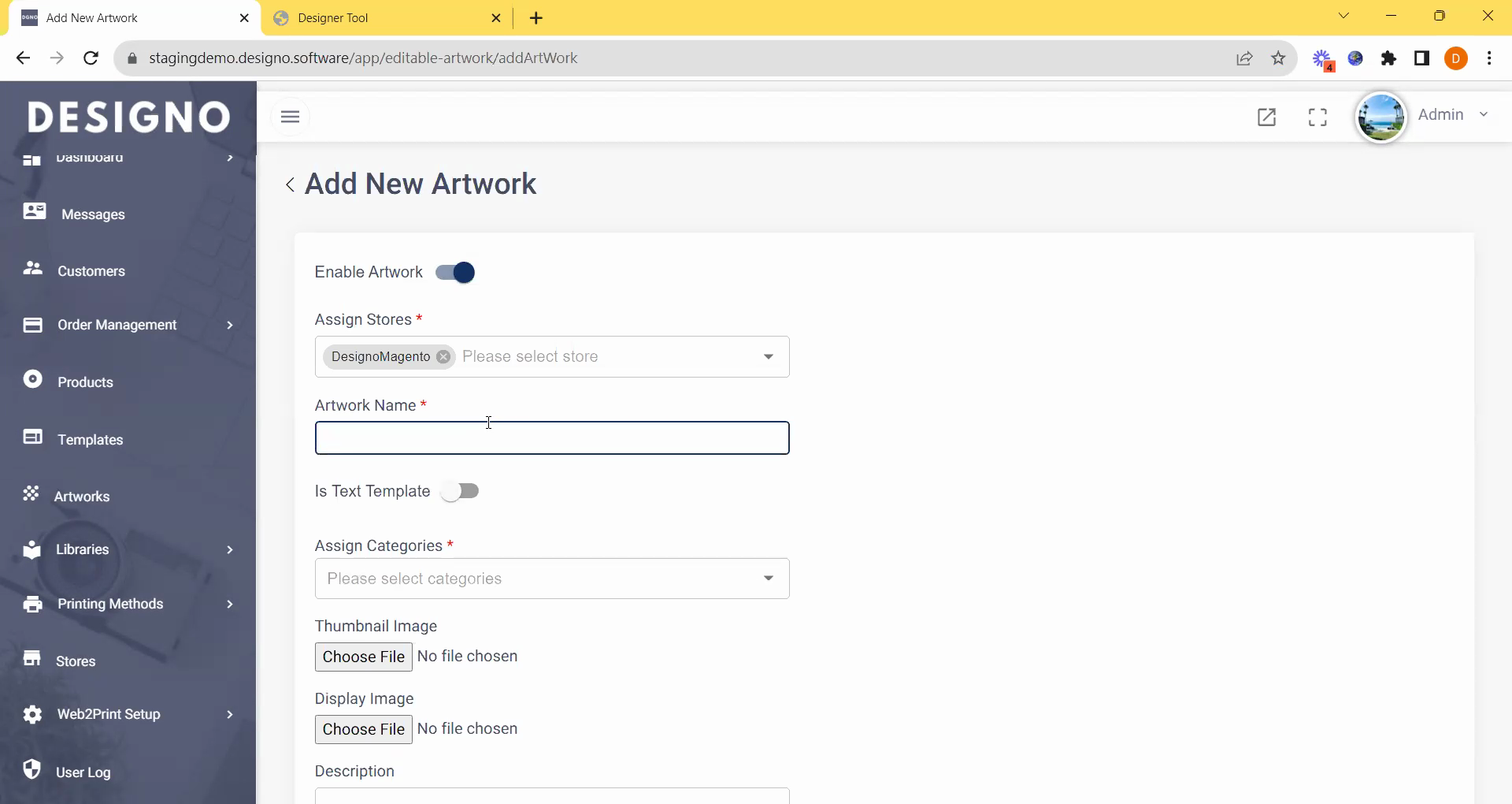Step 4: Select the store, name the artwork, and decide if it will be a text template. Text templates are visible under the text in the design studio.